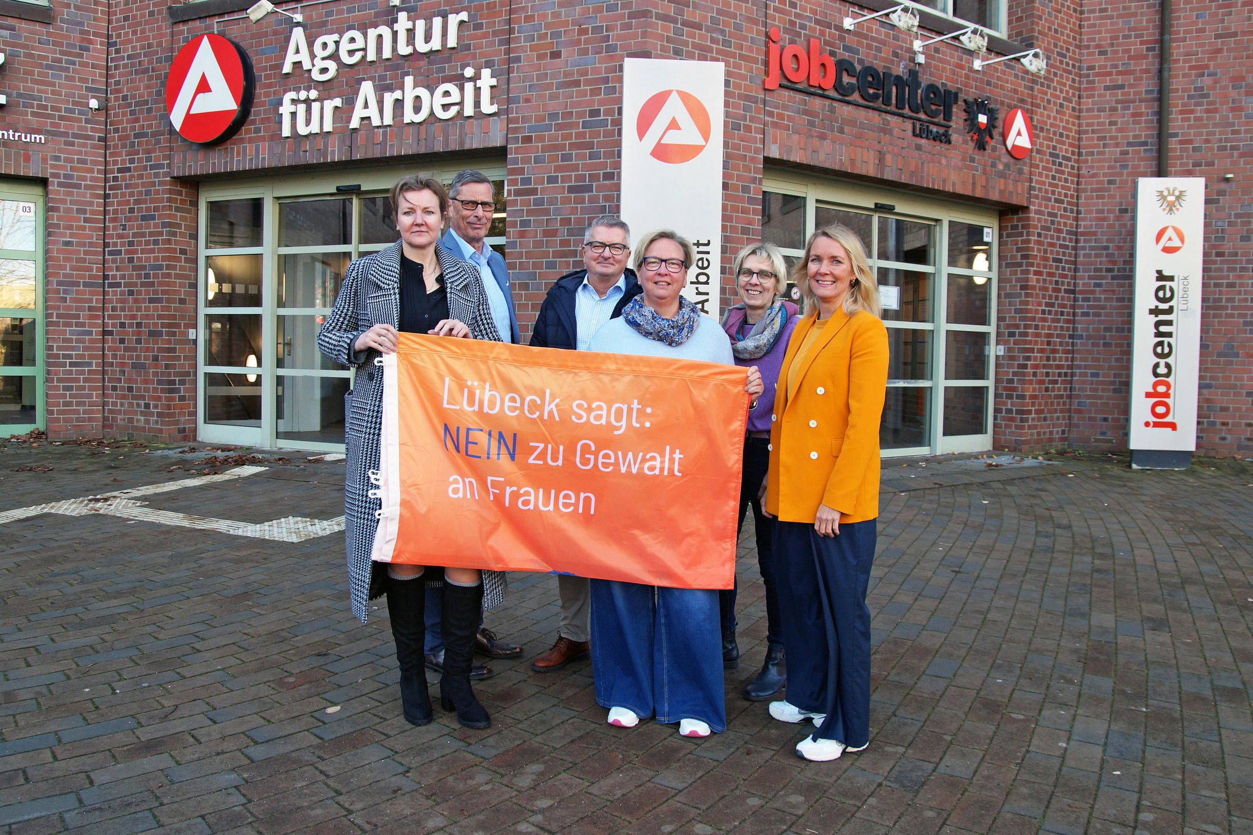 Die Agentur für Arbeit und das Jobcenter Lübeck beteiligen sich bereits zum sechsten Mal an dem Aktionstag und hissen die Fahne „Lübeck sagt: Nein zu Gewalt an Frauen“. Insgesamt engagieren sich über 40 Organisationen in Lübeck gegen Gewalt.