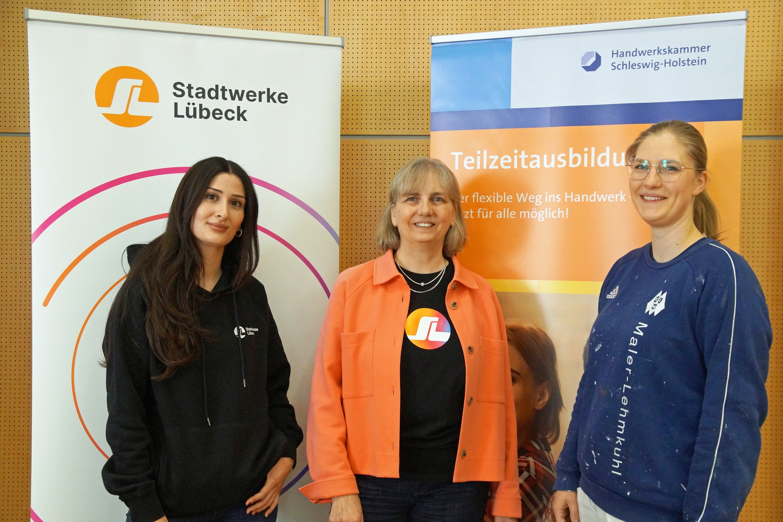 Zahlreiche Interessierte nutzten die Gelegenheit, sich über diese besondere Form der Ausbildung zu informieren. Dabei konnte vor Ort bei der Handwerkskammer oder per Livestream teilgenommen werden. Schnell wurde deutlich: Das Thema bewegt viele, denn eine Ausbildung in Teilzeit eröffnet echte Chancen für Menschen, für die eine klassische Vollzeitausbildung gerade nicht machbar ist. Für die Besucher:innen gab es im Anschluss an die Vorträge ein Beratungsangebot, Bewerbungsmappencheck und Berufsorientierung von Partner:innen wie zum Beispiel der Beratungsstelle Frau & Beruf. „Die Ausbildung in Teilzeit verläuft im Grunde wie eine Vollzeitausbildung – nur, dass die tägliche/wöchentliche Ausbildungszeit im Betrieb individuell verkürzt wird. Das Ausbildungsmodell zeigt sich flexibel und passt sich den Lebensbedingungen der Auszubildenden an“, erklärt Leo Nickel, Fachberaterin für das Projekt „Teilzeitausbildung für alle!“ der Handwerkskammer Lübeck.