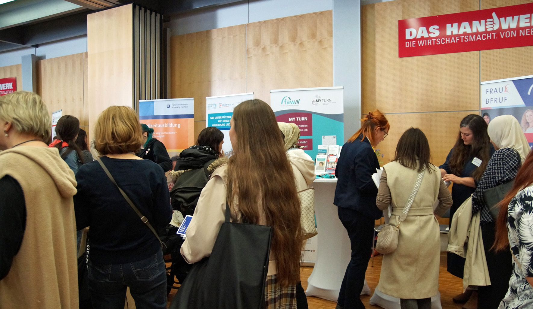 Der Weg in eine neue Beschäftigung ist - insbesondere für Frauen - nicht immer geradlinig. Häufig müssen zunächst ganz praktische Fragen geklärt werden: Wer betreut die Kinder? Welche Qualifikationen brauche ich? Wie gehe ich mit einer gesundheitlichen Belastung um? Genau hier setzt der Infotag „Arbeit, aber wie?“ an, der auch in diesem Jahr in der Handwerkskammer stattfand. Organisiert vom Netzwerk Chancen für Frauen bot die Veranstaltung eine bunte Mischung aus Information, Beratung und Austausch.