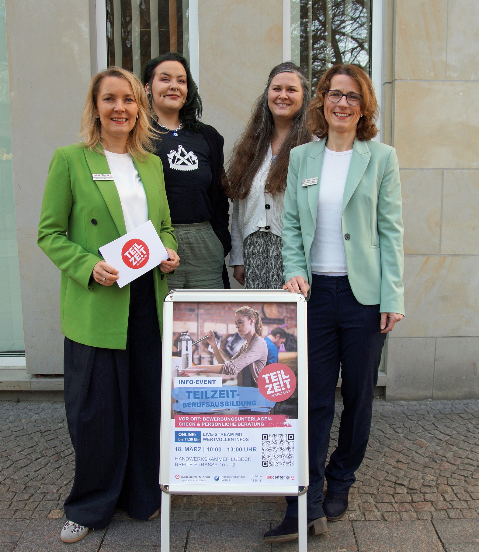 Sie haben die Veranstaltung verpasst und interessieren sich für eine Ausbildung in Teilzeit? Gerne stehen Ihnen die Expertinnen von Jobcenter und Arbeitsagentur Lübeck zur Verfügung: